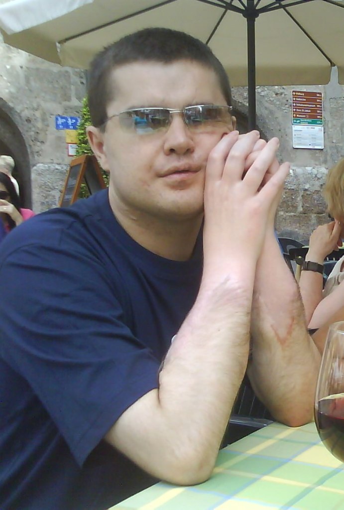 Before the explosion, I was like other guys of my age. I liked playing football on the weekends, reading historical books. I had parents and grandparents, sweetheart, a LOT OF FRIENDS …I was a very happy young man… I wish I understood it then. My recovery after the accident took months. I had to learn to help myself without hands. My stumps hurt badly; I could not do anything with them. I was helpless like a baby. That was a real torment to call for help after every visit of the bathroom. Fortunately, I could soon find very simply solutions of almost all normal daily activities. The years after the explosion were years of despair and pain. Of course, I understood that was a stroke not only for me but for my family too. Their son strong healthy guy suddenly became very disabled. And I was in state of despair. It seemed like I was not left with anything from my life prior to the explosion. I did not want to see anybody. I stayed at home by myself not knowing how to live without hands, with my burned face and a very poor eyesight. I think it is quite simple to understand my mental state.